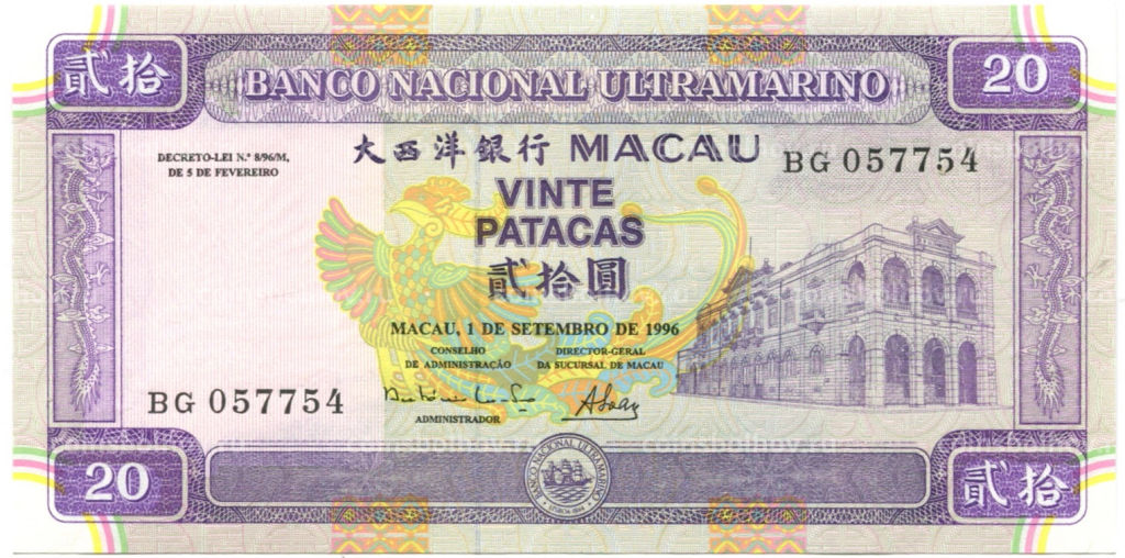 • Банкнота 20 патака 1996 года Макао