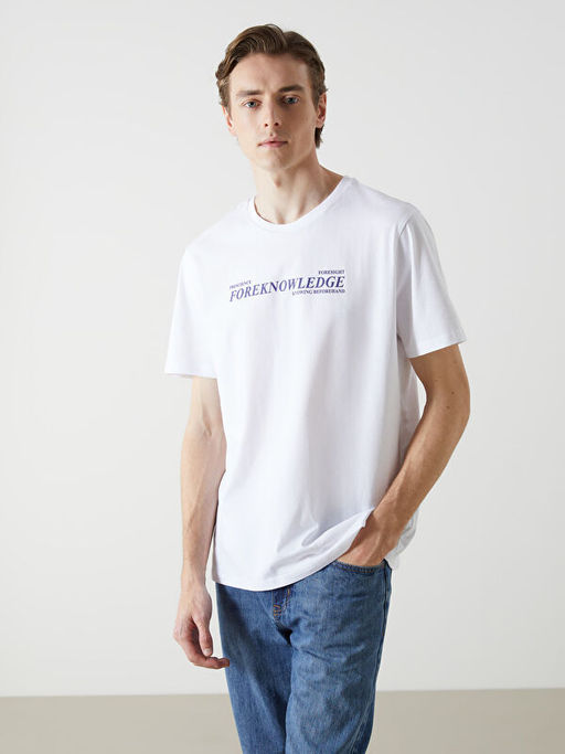 • Bisiklet Yaka K?sa Kollu Bask?l? Penye Erkek Ti??rt