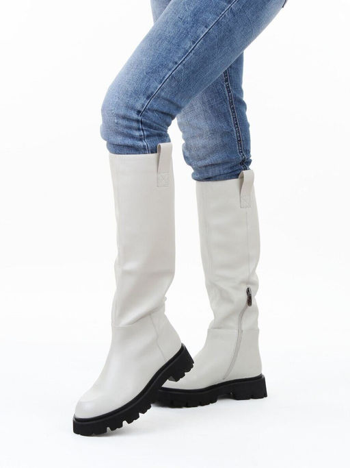 • 02-E39B-53R MILK Сапоги демисезонные женские (натуральная кожа)
