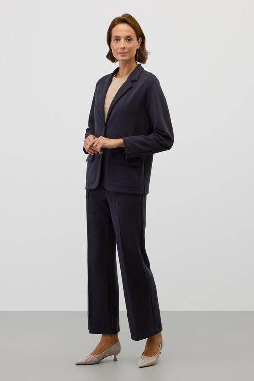 Пиджак выполнен из инновационного трикотажного материала, называемого рибана DOUBLE FACE. Этот вид полотна отличается особой вязкой, что обеспечивает ему превосходную эластичность и мягкость.