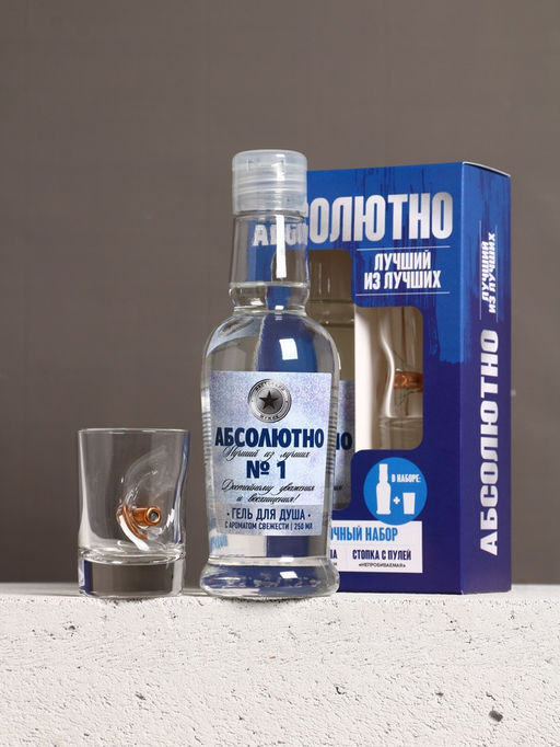 • Набор «Абсолютно»: гель для душа во флаконе водка 250 мл и стопка с пулей, Чистое счастье