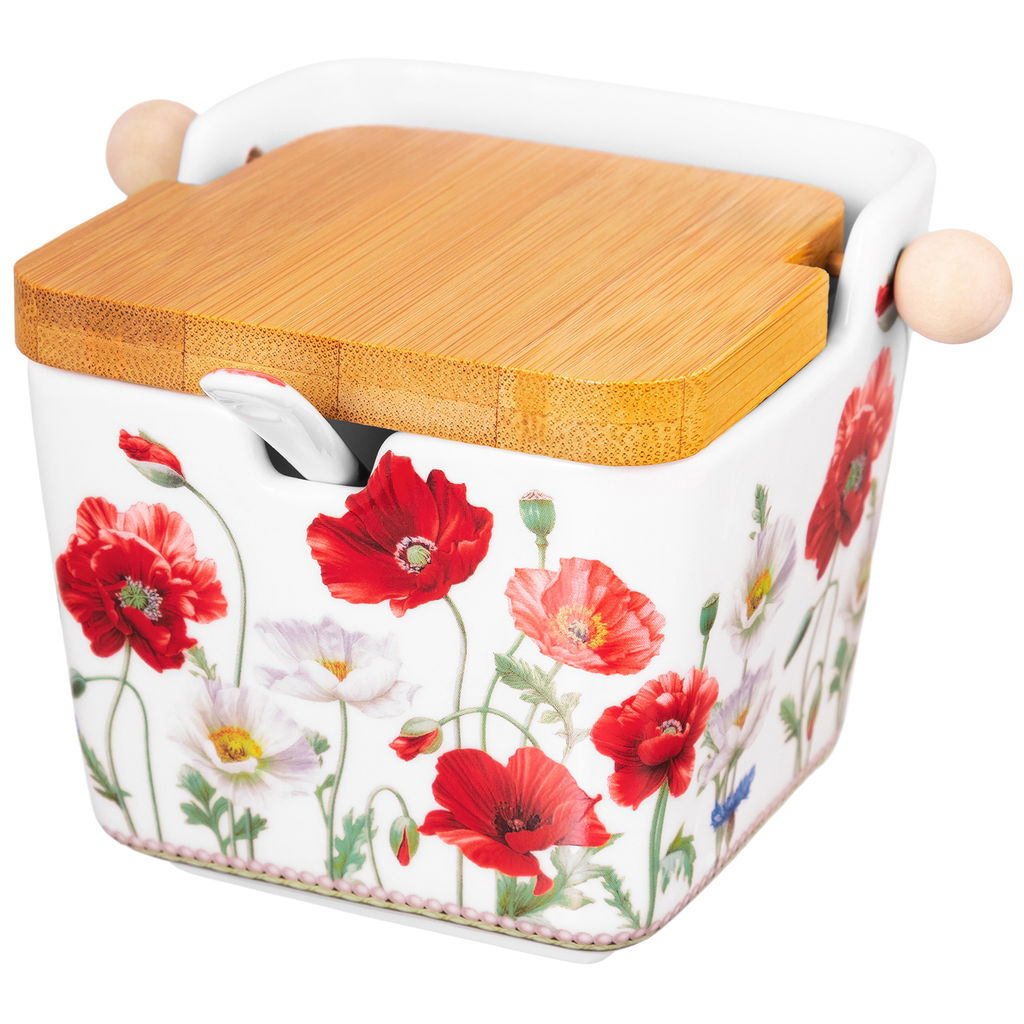 Банка д/сыпучих продуктов 300 мл 12*9,5*9 см "Маки", с откидной бамбук.крышкой NEW BONE CHINA