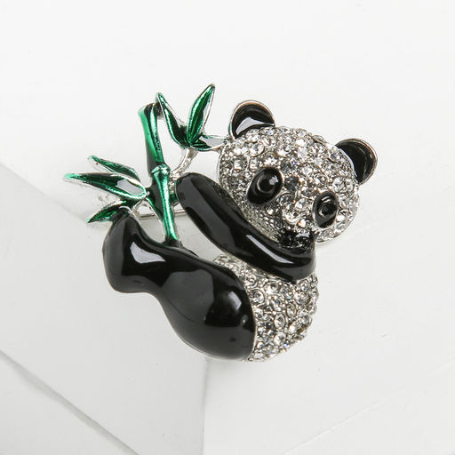 • Брошь «Панда с бамбуком», разноцветная в серебре
