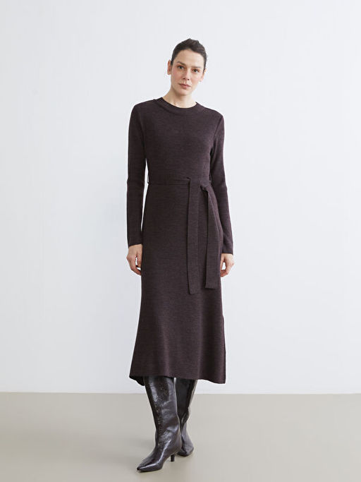 • Bisiklet Yaka Beli Ku?akl? Triko Elbise