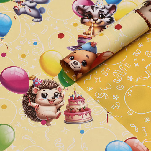 Цена за 10 шт. Бумага упаковочная глянцевая двусторонняя «Зверята с шарами», 100×70 см