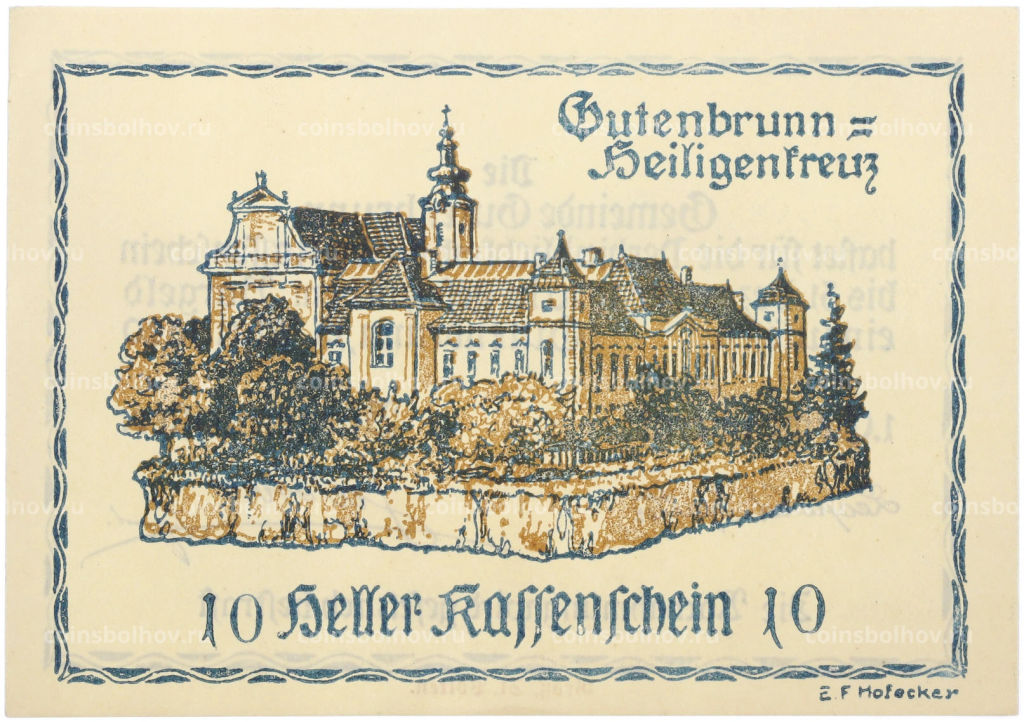 Банкнота 10 геллеров 1921 года Австрия община Гутенбрунн (Нотгельд)