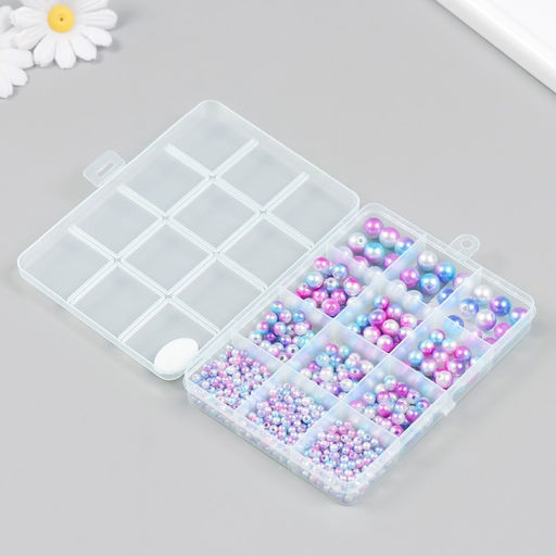 Бусины в шкатулке «Градиент голубо-сиреневый», 12 делений, 10×13.5×1.8 см