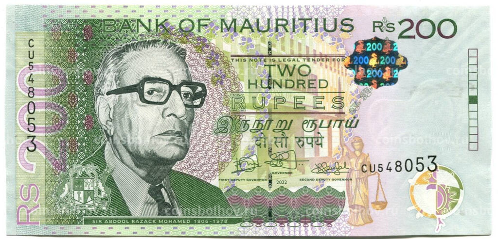 • Банкнота 200 рупий 2022 года Маврикий