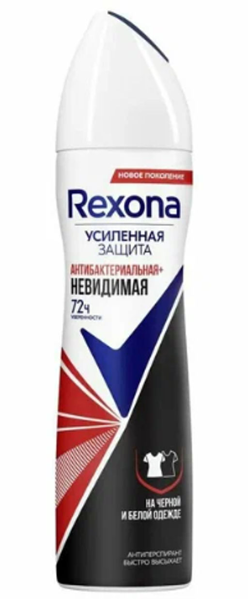 Рексона дезодорант-антиперспирант женский Антибактериальная и невидимая на чёрном и белом, 150 мл средство для защиты от пота и запаха.