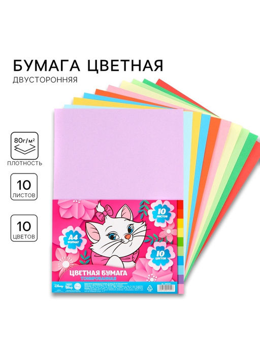• Цена за 2 шт. Бумага цветная тонированная, А4, 10 листов, 10 цветов, немелованная, двусторонняя, в пакете, 80 г/м², Коты Аристократы