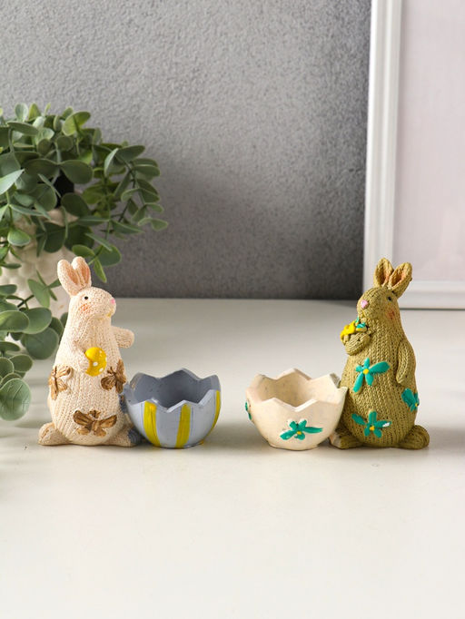 Фигурка - подставка полистоун Зайчики пасхальные, набор 2 шт., 5.3?10?10 см