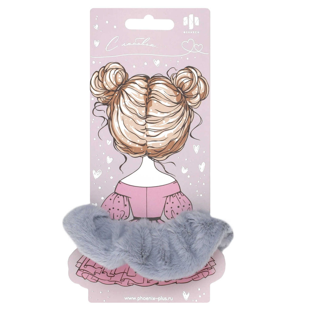 Резинка для волос арт. 71833 / 10 ПУШИСТАЯ (в наборе: 1шт., б/р, вулканизированная резина, полиэстер, цвет: серый, подложка из мелованного картона + ПЭТ-пакет с европодвесом)