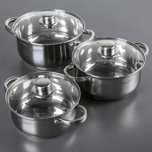 Состав набора: кастрюля с крышкой 2.2 л, кастрюля с крышкой 3.2 л,кастрюля с крышкой 4.2 л