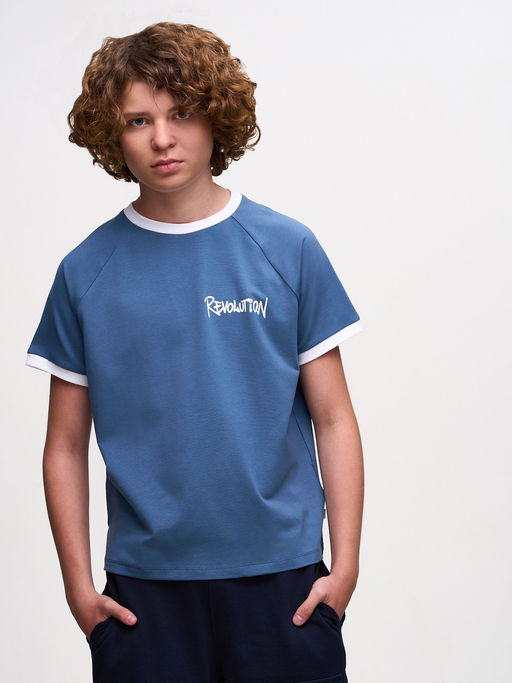 Футболка свободного кроя для мальчика прямого силута из экологичного премиального полотна качества пенье кулирная гладь с лайкрой, короткий рукав-реглан. Планки рукава и горловины из рибаны контрастного цвета. Износостойкий принт . Наши изделия не закатываются и не садяться и не линяют , будет форму держать после стирки .Соответствуют ГОСТу и нормам СаНПиНа. Состав:92% хлопок, 8% лайкра