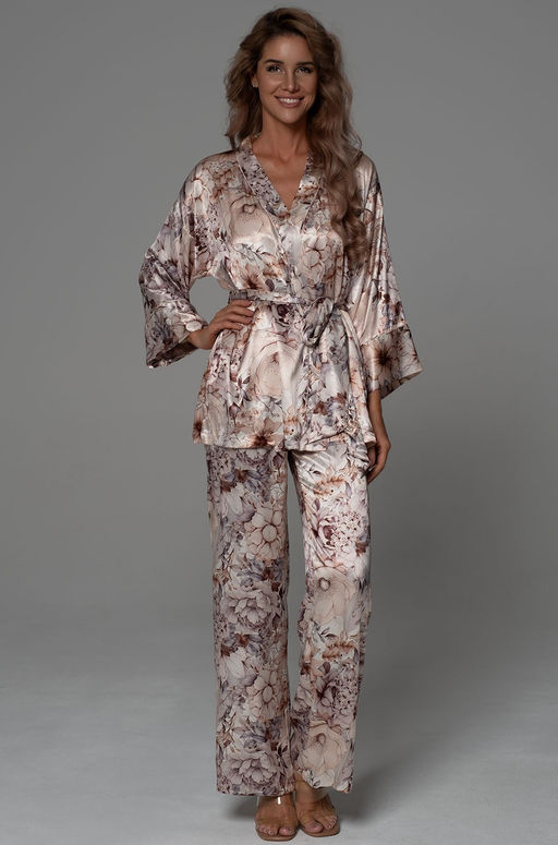 Комплект-тройка Mia-Amore состоит из запашного жакета, топа на тонких бретелях и брюк, выполнен из смесового шелка, жакет и брюки выполнены из принтованного шелка, топ из однотонного. Край борта жакета, манжеты рукавов и лиф топа декорированы контрастным тонким кантом. В боковых швах брюк обработаны карманы. В комплекте идет пояс, чтобы приталить силуэт туники и подчеркнуть элегантный образ. Состав:70% натуральный шелк, 25% полиэстер, 5% эластан