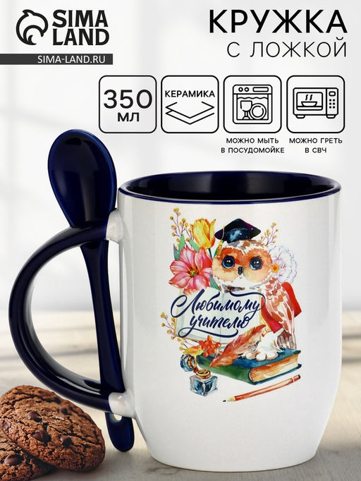 Керамическая кружка с ложкой объёмом 350 мл — идеальный выбор для любителей горячих и холодных напитков.Преимущества этого товара:Экологичность и безопасность: изготовлена из высококачественной керамики, не содержащей вредных веществ.Удобство использования: кружка оснащена удобной ручкой и ложкой для комфортного питья.Универсальность: подходит для любых напитков, включая горячие и холодные.Стильный дизайн: классический дизайн впишется в любой интерьер.Лёгкость ухода: можно мыть в посудомоечной машине, не впитывает запахи.Не упустите возможность приобрести эту стильную и функциональную кружку с ложкой для себя или в подарок близким! Набор: Да. В наборе, шт.: 2. Объём, мл: 350. Тематика: Школа. Тематика: Профессия. Рисунок: Да. Тематика праздника: Профессиональные праздники. Тематика праздника: День учителя. Дополнительный аксессуар: Ложка. Составляющие набора: Кружка. Индивидуальная упаковка: Да. Можно мыть в посудомоечной машине: Да. Можно использовать в СВЧ-печи: Да. Текстура: Гладкая. Особенности: Деколь. Матовая поверхность: Нет. Бесплатная доставка: Да. Наша разработка: Да. Размеры товара: 8/8/11.