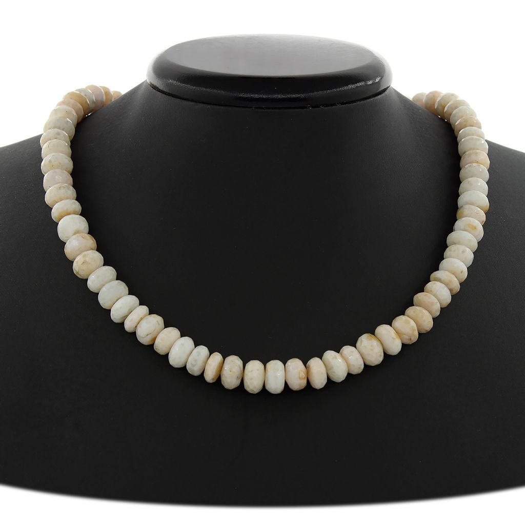 Опал розовый "Мекка", приплюснутые круглые гранёные бусины 10мм, бусы длиной 47см