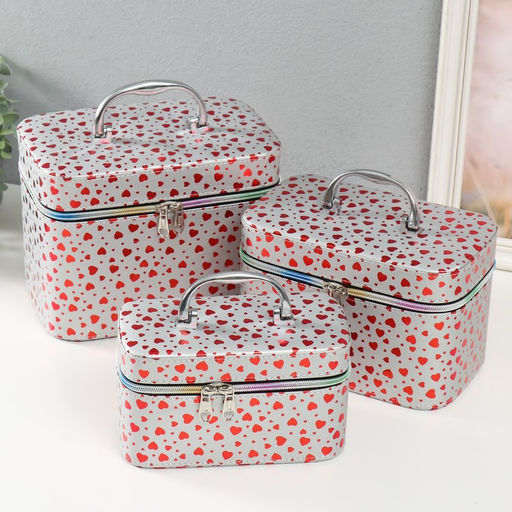 Набор шкатулок для украшений Сердца на белом, 3 шт., с зеркалом, искусственная кожа, 13?21?14.5; 10?19?12; 21?15.5?17 см