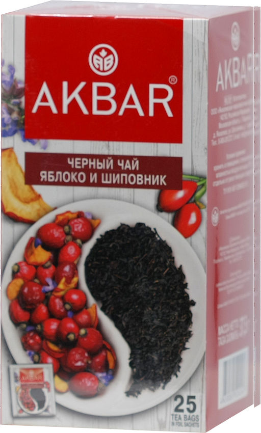 • AKBAR. Черный чай. Яблоко-шиповник карт.упаковка, 25 пак.
