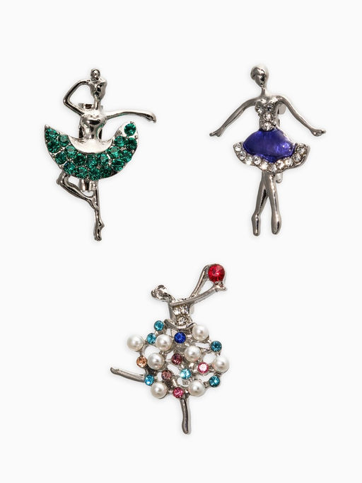 • Броши "Балеринки" (набор 3шт), цвет микс в серебре