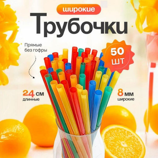 • Коктейльные трубочки цветные с изгибом, длинная гофра, толстые240*8 мм