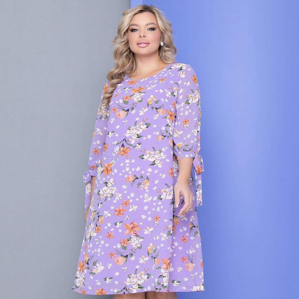 Платье силуэта “трапеция“ из шифона на подкладе с рукавом 3/4.