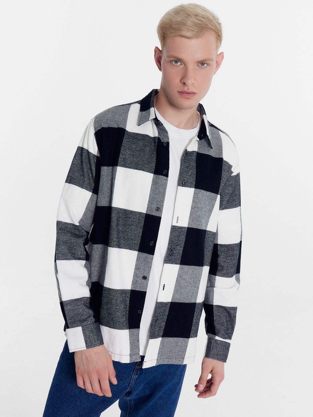 • Рубашка мужская в черно-белую клетку черно -белая клетка 111908