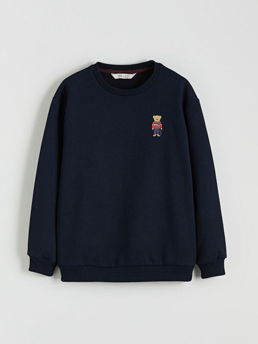 Bisiklet Yaka Ay? Teddy Bask?l? Erkek ?ocuk Kal?n Sweatshirt