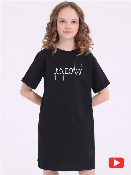 платье,хлопок 100%,кулир / хлопок 100%,черный / - / Коты мяукают / - / - / -,Платье Oversize из кулира - легкого хлопкового полотна. Изделие с короткими рукавами со спущенным плечом с отворотами, украшено ярким принтом. Отличный выбор для летнего жаркого дня! Уход: только машинная стирка (руками не стирать!) при температуре 40 градусов, без предварительного замачивания. Изделия с печатью и декором перед стиркой необходимо вывернуть на изнаночную сторону.