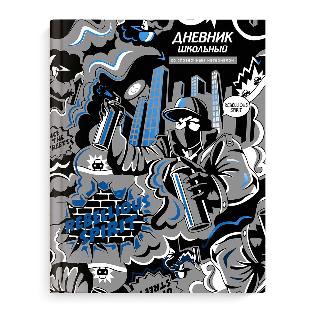 Дневник школьный арт. 66859 БУНТАРСКИЙ ДУХ / твёрдый переплёт, А5+, 48 л., тиснение цветной фольгой, глянцевая ламинация, печать в одну краску, универсальная шпаргалка/