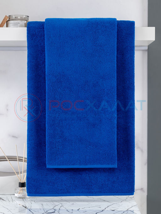 Махровое полотенце без бордюра синее ПМ-89 70х140