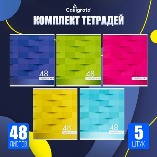 • Набор тетрадей 48 листов в клетку, Calligrata «Мозаика», серые листы, 5 шт.