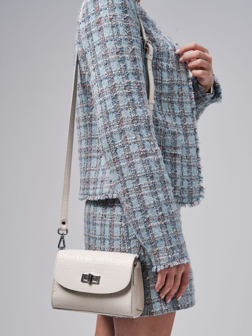 Стильная сумка на плечо кросс-боди Deboro 31033 крок/бежевый лен станет отличным дополнением вашего образа и надежным аксессуаром для повседневной жизни. Изготовленная из натуральной кожи и замши, она обладает высокой прочностью и долговечностью. Эта женская сумка выполнена в аккуратном и элегантном дизайне, что делает её универсальным вариантом как для ежедневного использования, так и для особых случаев. Сумка кросс-боди легко носится через плечо, что обеспечивает комфорт во время ношения. Наличие регулируемого ремня добавляет удобства, позволяя вам подстроить его под свои предпочтения. Водонепроницаемая подкладка сбережет изделие от повреждений. Удобный замок обеспечивает быстрый доступ к нужным вещам. Два отделения и внутренний карман позволяют удобно расположить вещи. Использование натуральных материалов гарантирует не только стильный внешний вид, но и функциональность. Эта сумка DEBORO среднего размера позволит вам выглядеть безупречно в любых обстоятельствах. Если вы ищете идеальный аксессуар для создания образа или подарка близкому человеку, эта модель точно вас не разочарует. -- Характеристики -- Цвет: беж/лен Материал: Натуральная кожа;Замша натуральная Бренд: Deboro Тип: Сумка на плечо Страна-изготовитель: Россия Высота, см: 13 Ширина, см: 19 Глубина, см: 8 Материал подкладки: Хлопок Количество внутренних отделений: 1 Тип застежки: Замок-вертушка Формат А4: не вмещает Длина плечевого ремня, см: 116 Вес товара, г: 310 Ручки: На плечо;Одна лямка;Плечевой ремень Пол: женская коллекция Группа товара: Сумки