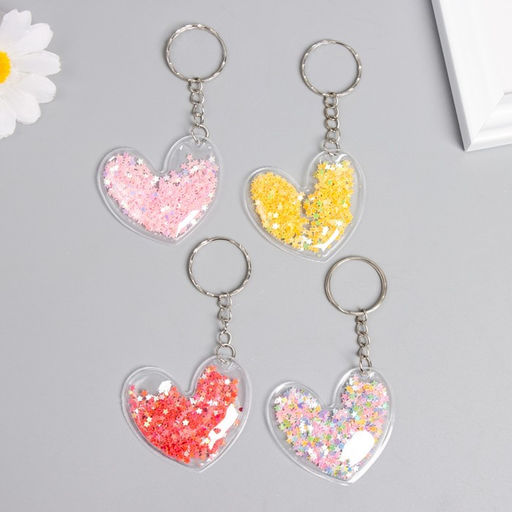 Цена за 12 шт. Брелок для ключей на кольце Сердечко, пластик с глиттером, 5.2?4.8 см, МИКС