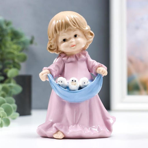 • Фигурка керамика «Ангелочек в розовом платье, с цыплятами в подоле», 15 см