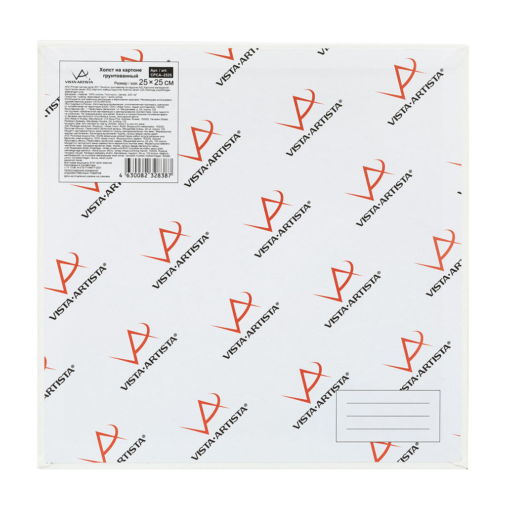 Холст - это идеальная основа для художественного творчества. Холст грунтованный на картоне "VISTA-ARTISTA" представляет собой хорошо загрунтованную и наклеенную на плотный картон ткань. Продукт используется для живописи масляными и акриловыми красками. Состав холста - 100% хлопок. Плотность - 240 г/м2. Покрытие - акриловый грунт. Толщина картона: 3 мм Небольшой вес, удобно хранить и использовать в т.ч. брать на пленэр. Срок годности не ограничен. Размер холста грунтованного на картоне может отличаться на 10 мм. -- Характеристики -- Мин. кол-во для заказа: 1 Кратность: 1 Артикул: CPCA-2525 Вес единицы продажи (кг): 0.385 Вес отгрузочной упаковки, г: 385 Габариты отгрузочной упаковки, см: 25.6*25.1*0.6 Длина, см: 25 Количество в транспортной упаковке: 24 бренд: "VISTA-ARTISTA" Минимальная температура перевозки: 0 Назначение: для рисования Объем единицы продажи, л: .31 Основа: картон Плотность, г/кв.м: 240 Состав: 100% хлопок Срок действия сертификата Минпромторг: 09.10.2026 Страна происхождения: Россия Техника: Акрил, Масл Тип грунта: акриловый Тип товара: Холст Тип упаковки: в полиэтиленовой пленке Форма: прямоугольник Ширина, см: 25 Фактура: мелкозернистый Цвет: БЕЛЫЙ