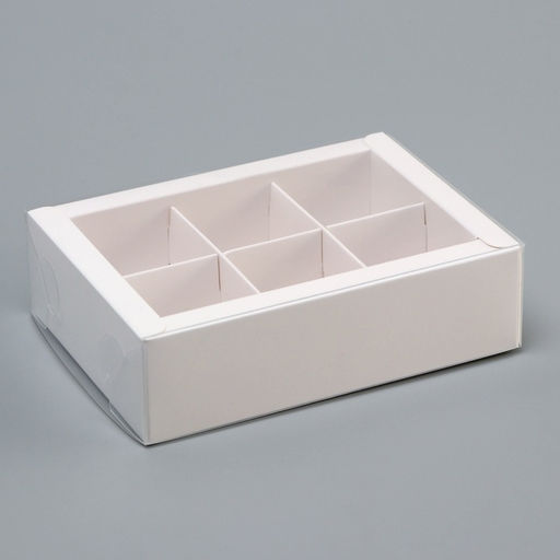 Цена за 2 шт. Коробка для 6 конфет, белая с прозрачной крышкой, 13.7×9.85×3.85 см