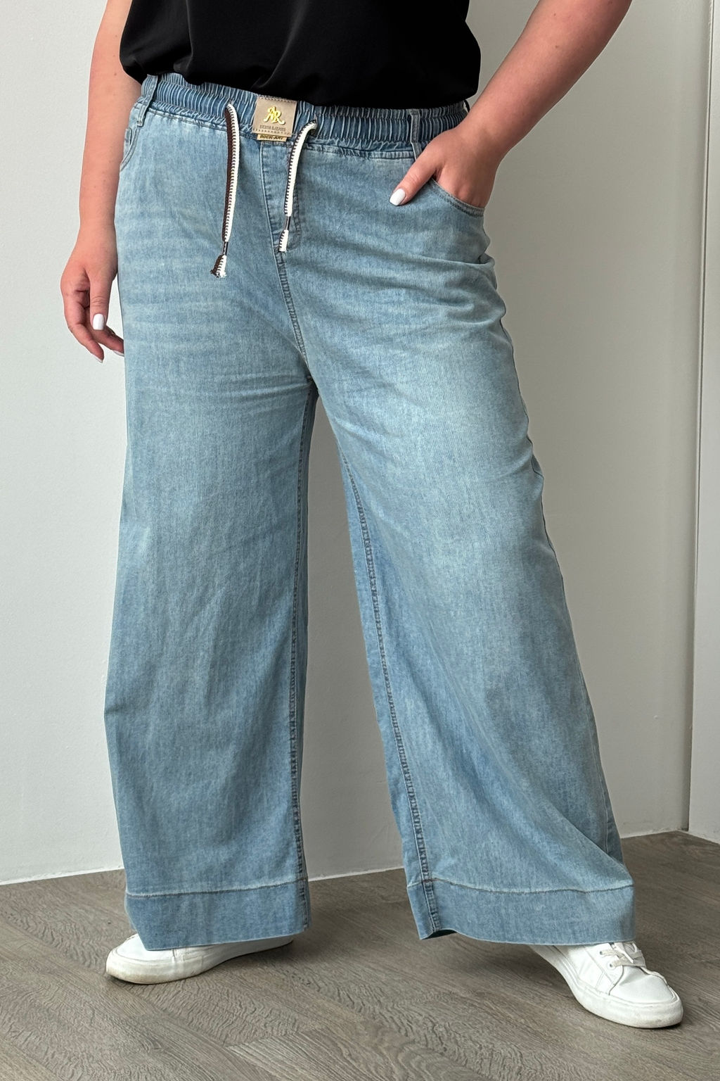 Джинсы со шнуровкой на поясе голубые