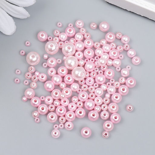 Бусины для творчества пластик «Круглые. Розовая пудра», d=3-8 мм, набор 10 г