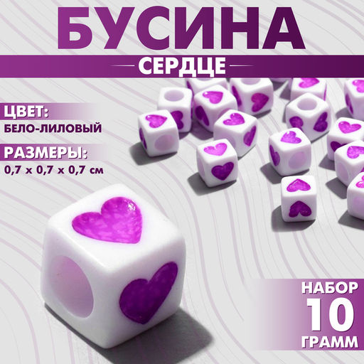 • Цена за 2 шт. Бусины для творчества из акрила «Сердце», кубик 7×7 мм, набор 10 г, цвет бело-лиловый