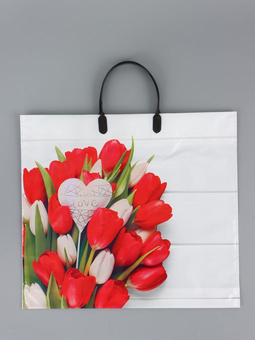 Цена за 10 шт. Пакет «С любовью», полиэтиленовый с пластиковой ручкой, 38×34 + 3 см, 90 мкм
