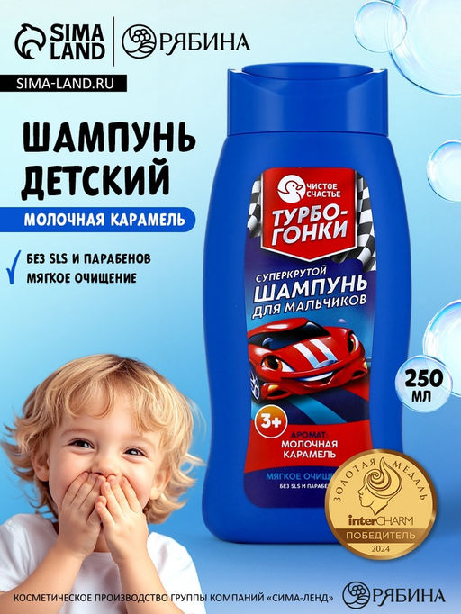 • Шампунь детский для мальчиков «Суперкрутой шампунь», аромат молочная карамель, 250 мл, Чистое счастье