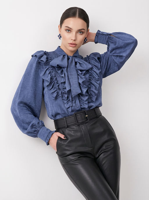 • Блузка с рюшами и воротником-завязка OD-988-3 синий