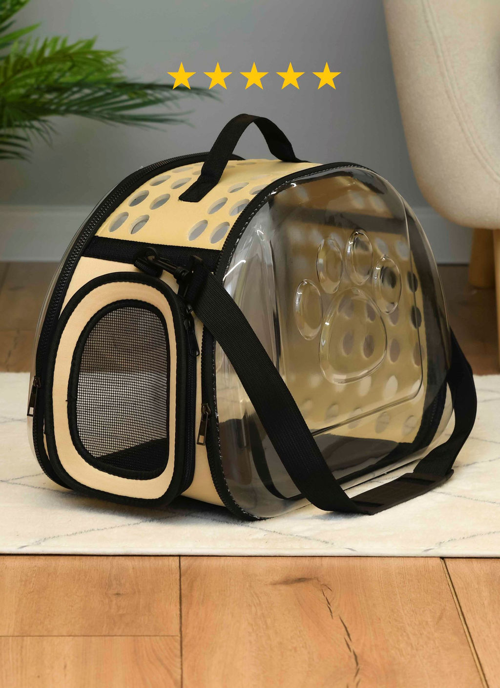 • ВВА Сумка-переноска для животных складная прозрачная, 45*25*33 см., серая PS001