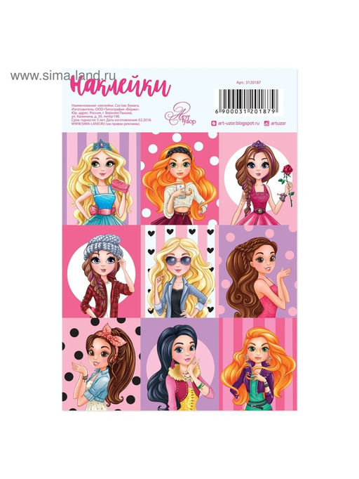 Цена за 10 шт. Наклейки детские бумажные «Стильные девчонки», c раскраской на обороте, 11 х 15.5 см