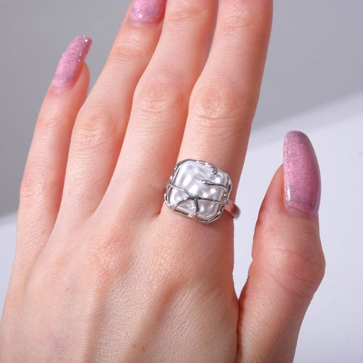 • Кольцо «Аура» квадрат, цвет белый в серебре, безразмерное