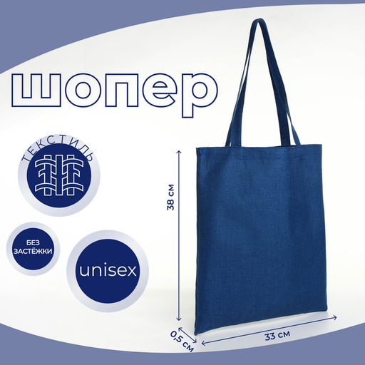 • Сумка текстильная шопер без застёжки, 33×0.5×38 см, синяя