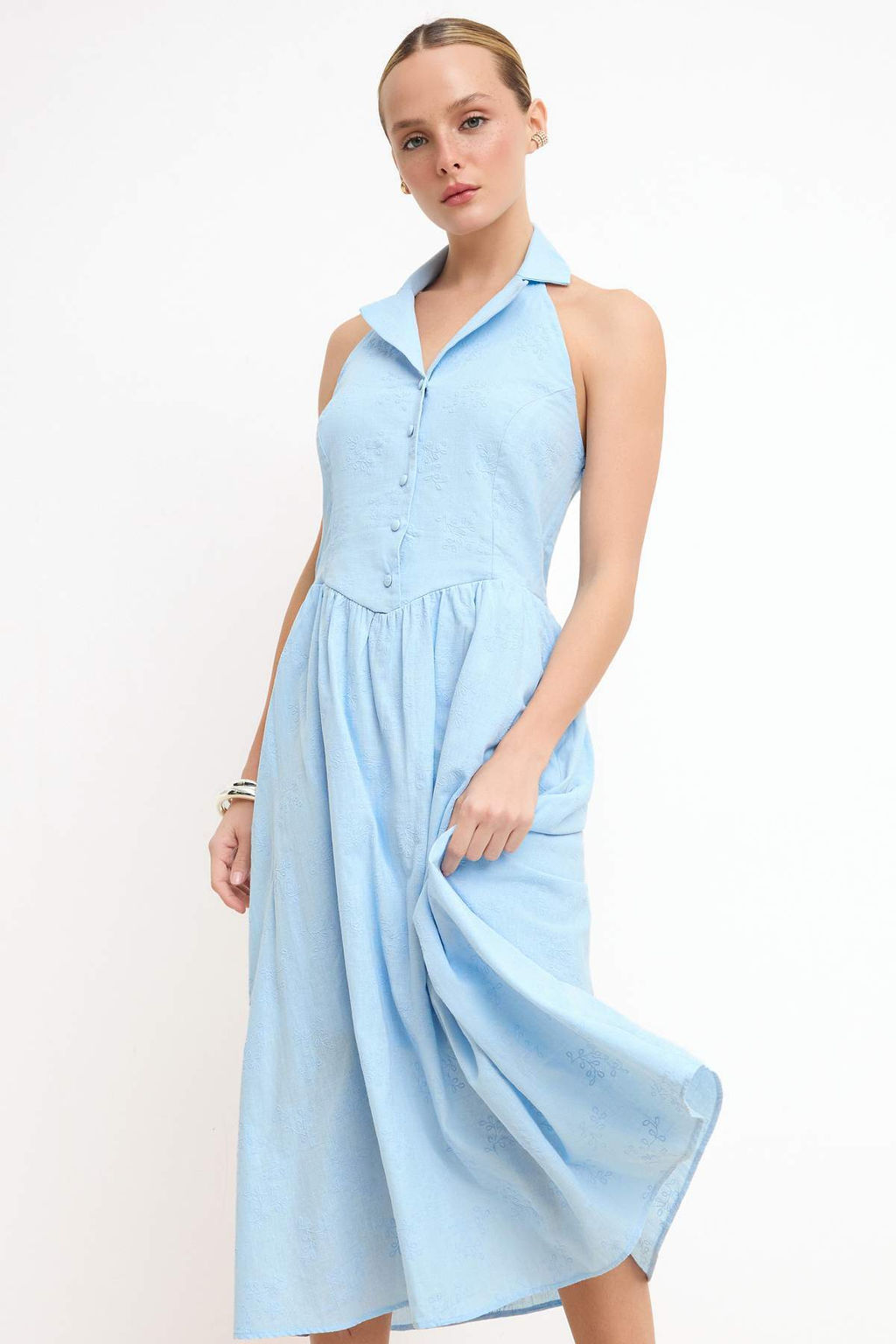 Ac?k Mavi Duz Maxi Dokuma Elbise TWOSS26EL00224