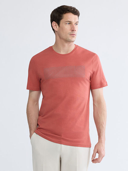 • Bisiklet Yaka Bask?l? Penye Erkek Ti??rt