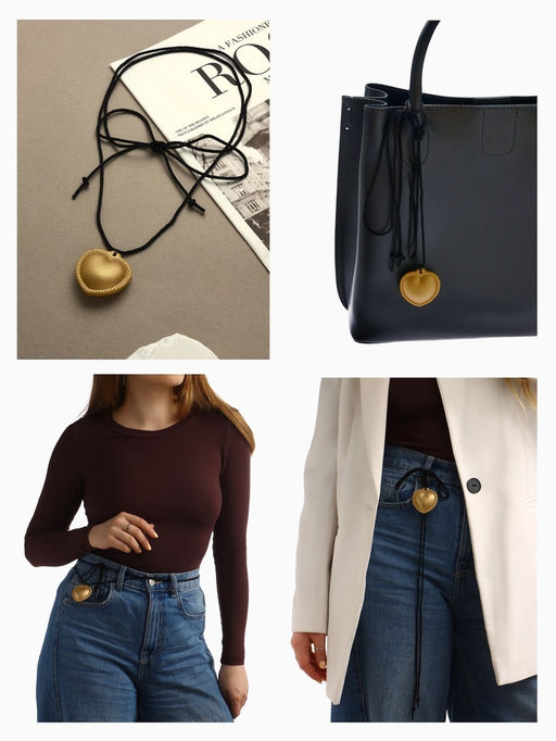 • Чокер/кулон на шнурке Сердечко кожа, трансформер, цвет золото, 150 см